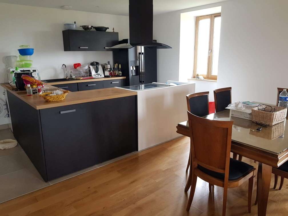 Cuisine à laquée brillant avec table en épi à Liré Cuisine
