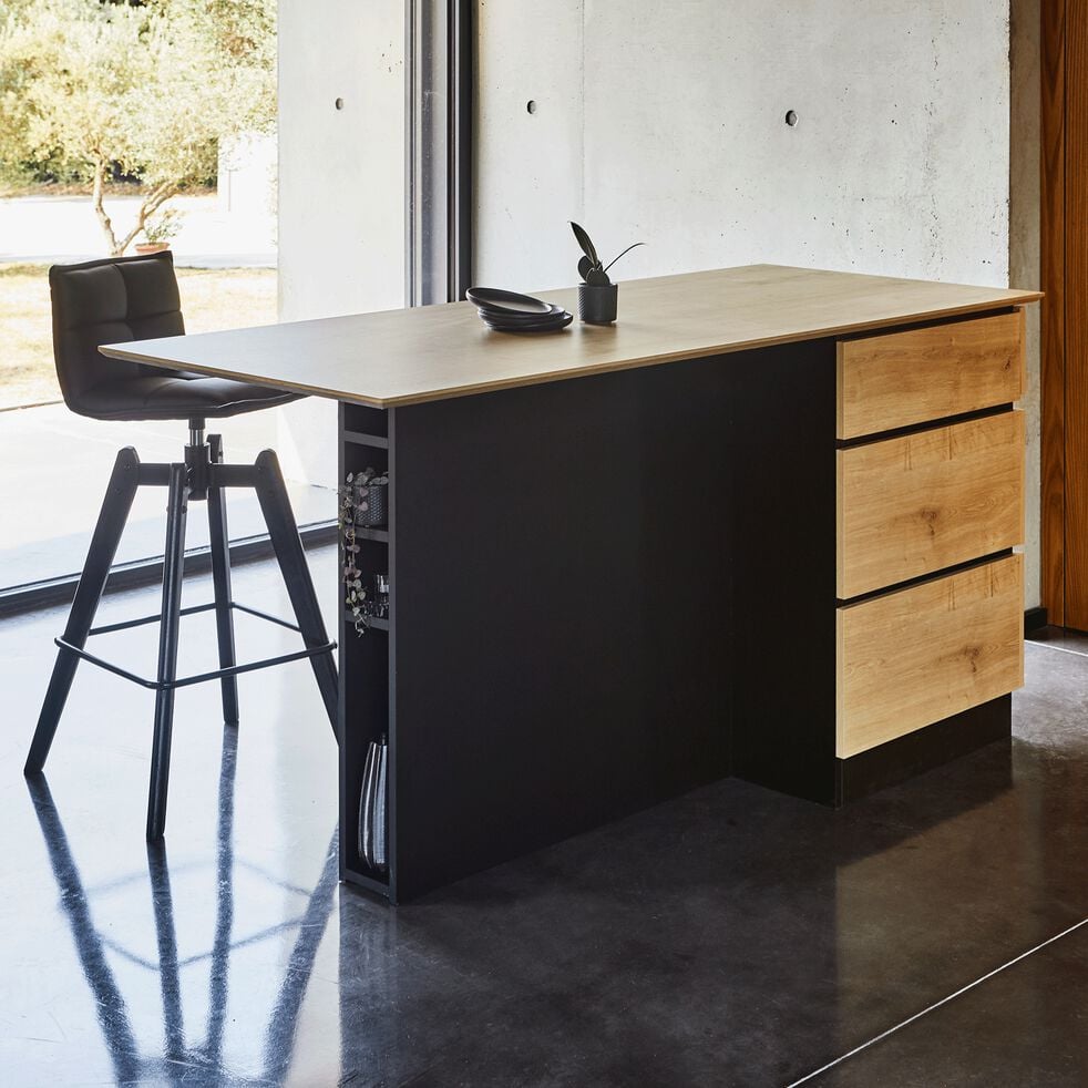 Ilot central de cuisine noir et chêne MAGE bar et îlot central